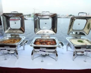 - 5-star international buffet with live stations, Arabic dishes, and desserts